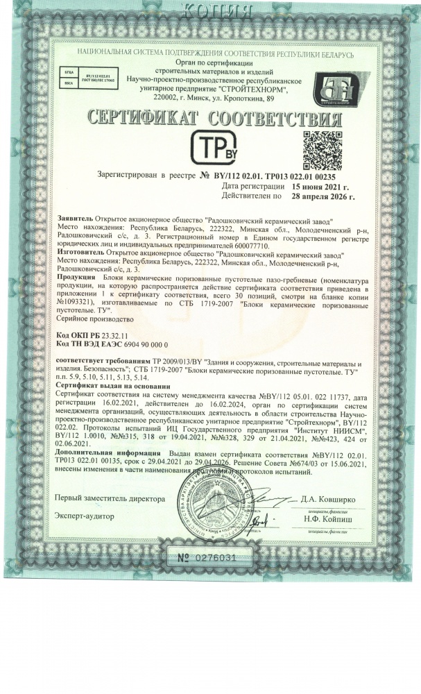 Выгодными аргументами покупки керамических строительных блоков от предприятия «Радошковичи кирпичный завод» выступают: